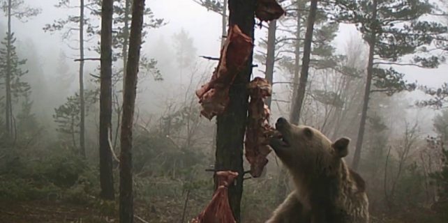 Erzurum’un Olur ilçesinde Ercan Polat isimli vatandaşın ormana yerleştirdiği fotokapana kentin yaban hayatından görüntüler yansıyor. Doğadaki hayvanları beslemek amacıyla ormanda bulunan bir ağaca yiyecek asan Polat, beslenmeye gelen yabani hayvanları da yakın bir yere kurduğu fotokapanla görüntülüyor. Polat’ın ağaca astığı yiyeceklerle karnını doyurmak için gelen bir ayı da fotokapana yansıdı. Ayının ağaçtaki yiyecekleri almaya çalışırken yaptığı hareketler ise gülümsetti.