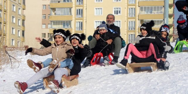 Erzurum’da yağan kar sömestr tatiline çıkan çocuklar için kayak alanları oluşturdu. Tatilin keyfini kızakla kayarak yaşayan çocukların mutlulukları ise güzel görüntüler oluşturdu. Çocukları ile kızak yapmaya gelen bazı velilerde kızakla kayak yaparak çocuklarına eşlik etti. Kızakla kayak yaparken çocukluk yıllarını hatırladıklarını ifade eden veliler çocuklarıyla beraber kayak yapmanın tadını çıkarttı. Öte yandan kızakla kayak yapan minikler ise sömestr tatilinde kayarak eğlendikleri için çok mutlu olduklarını belirtti.
