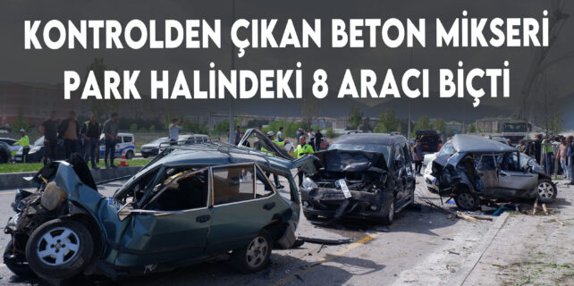 Kontrolden çıkan beton mikseri park halindeki 8 aracı biçti