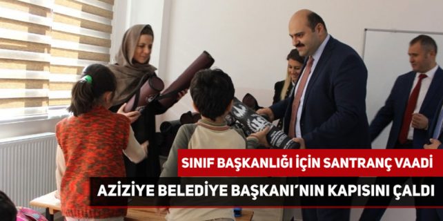 Sınıf başkanlığı için adaylığını koyan ilkokul 3. sınıf öğrencisi Baturalp Şener, sınıf arkadaşlarına seçim öncesi vaadini yerine getirerek tüm sınıfa satranç takımı hediye etti. Baturalp, bu vaadini ise Aziziye Belediye Başkanı Muhammed Cevdet Orhan’ın destekleri ile yerine getirerek hem sözünü tuttu hem de arkadaşlarının ilgi odağı oldu.