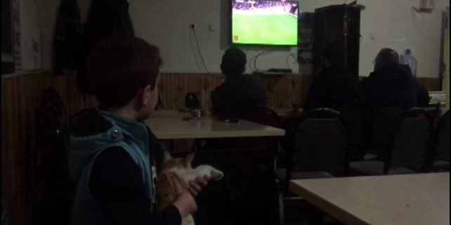 ERZURUM’DA KÜÇÜK BİR ÇOCUKLA KEDİSİ TEKİR HER MAÇI BİRLİKTE İZLİYOR.