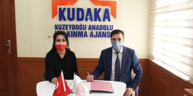 Kuzeydoğu Anadolu Kalkınma Ajansı hizmet binasında gerçekleşen imza törenine, KUDAKA Genel Sekreteri Oktay Güven ve İspir Hanımeli Kadın Kooperatifi Yönetim Kurulu Başkanı İpek Merve Coşkun katıldı.