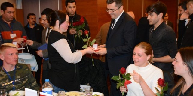 Programın sonunda Vali Memiş ve Başkan Sekmen, salonda bulunan kadınlara 8 Mart Dünya Kadınlar Günü nedeniyle gül ve çeşitli hediyeler verdi.