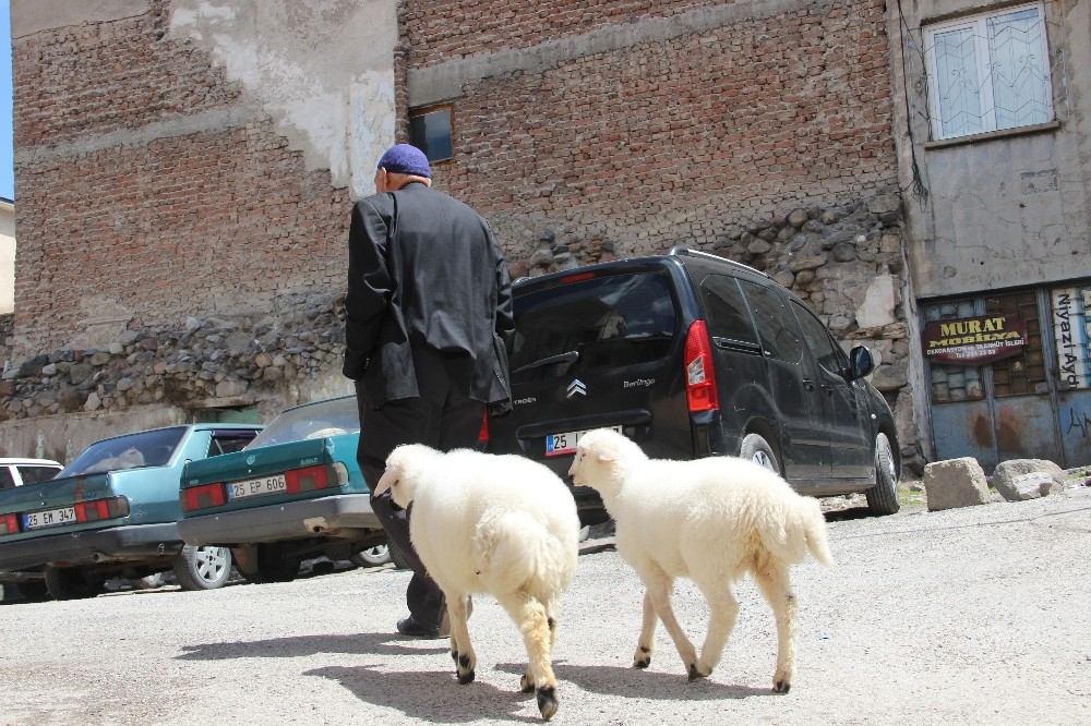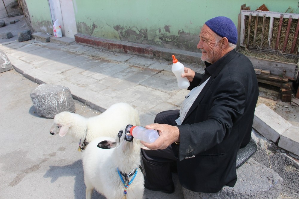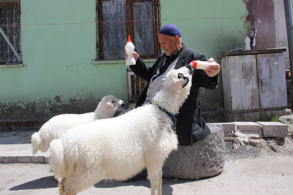Erzurum’un Yakutiye ilçesinde yaşayan Selami Yılmaz, evinin önünde büyüttüğü kuzularıyla çocuğuymuş gibi ilgileniyor. Doğdukları andan itibaren elleriyle besleyip ilgilenen Selami Yılmaz’ın evcil hayvan gibi peşinden giden kuzuları Berduş ve Efe, sahiplerinin izinde yaya geçidinden geçiyor, kaldırımda zıplıyor, insanların ilgi odağı oluyorlar.