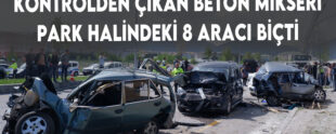 Kontrolden çıkan beton mikseri park halindeki 8 aracı biçti