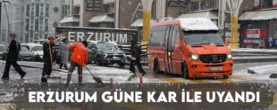 Erzurum’da vatandaşlar güne kar yağışı ve...