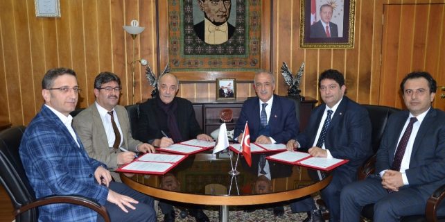 Atatürk Üniversitesi Rektörü Prof.Dr. Ömer Çomaklı’nın makamında gerçekleşen MEGİP Protokolü imza törenine Prof. Dr. Ömer Çomaklı, Erzurum Ticaret ve Sanayi Odası Yönetim Kurulu Başkanı Lütfü Yücelik, Ticaret Borsası Yönetim Kurulu Başkanı Hakan Oral ile Çalışma ve İŞKUR Şube Müdürü Halil İbrahim Coşkun katıldı.