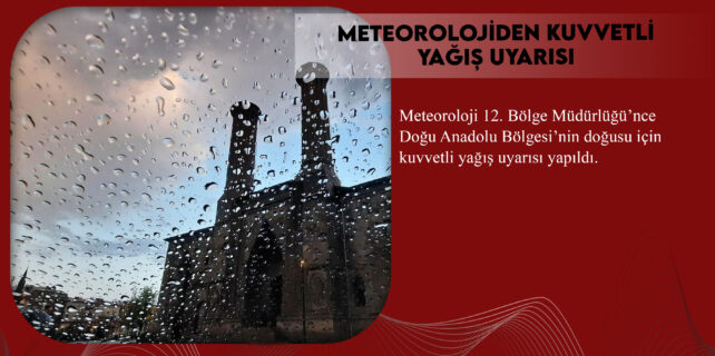 Yapılan meteorolojik uyarıda yarın Doğu Anadolu Bölgesi’nin doğusunda beklenen yağışların Erzurum, Ardahan ve çevrelerinde aralıklı ve yerel olarak kuvvetli olmasının beklendiği belirtildi. Yağışla birlikte ani sel, su baskını, yıldırım, dolu yağışı, yağış anında kuvvetli rüzgar ve fırtına ile ulaşımda aksamalar gibi olumsuzluklara karşı dikkatli ve tedbirli olunması istendi.