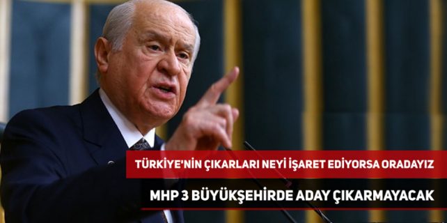 MHP Lideri Devlet Bahçeli, İstanbul, Ankara ve İzmir’de büyükşehir belediye başkanı adayı çıkarmayacaklarını açıkladı.