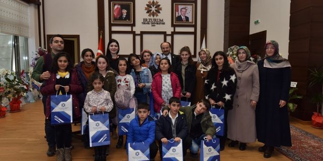 Prof. Dr. Bülent Çakmak’ın Erzurum Teknik Üniversitesi Rektörlüğüne atanmasından dolayı tebrik ve eğitimlerine sağladığı desteklerinden ötürü teşekkür ziyaretinde bulunmak üzere Nene Hatun Çocuk Evleri Sitesi Müdürü Aynur Yılmaz ve Müdür Yardımcısı Muhammed Başboğa eşliğinde üniversiteye gelen 14 çocuğu eşi ile birlikte Rektör Çakmak karşıladı.