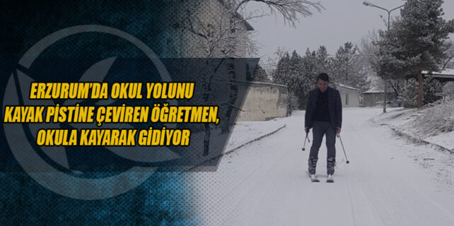 Erzurum’un Uzundere ilçesi kar yağışının etkisiyle beyaz örtüyle kaplandı. Ender kar yağışının olduğu ilçede bulunan Şelale İlkokulu’nun Müdür Yardımcısı İbrahim Turan, kar yağışını fırsat bilerek okul yolunu adeta kayak pistine çevirdi. Ulaşım aracı olarak kayak takımlarını kullanan Turan, okula mahalledeki yollardan kayarak gidiyor. Turan’ın kayak yaptığı görüntüleri ise sosyal medyada izleyenleri gülümsetti.