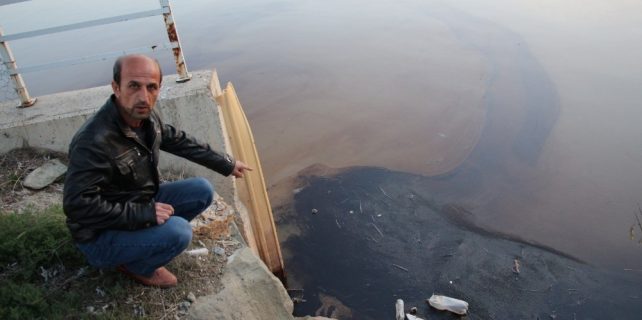 Dün yine Oltu’nun Kurupınar mevkiinden geçen Oltu Çayı’na tonlarca zift ve yanmış atık yağ boşaltıldı. HES göletinde görülen zift ve yanmış yağ suyun üzerini kaplamış durumda.
