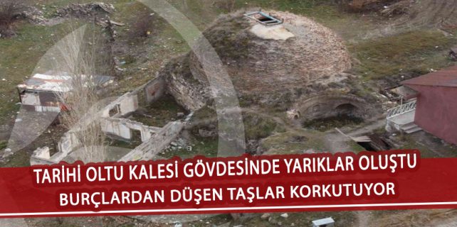 Milattan önce III. yüzyılda tüm Doğu Anadolu’ya hakim olan Urartular döneminde yapılan ve İpek Yolu ticaretinin güvenliğini sağlamak içinde kullanılan Oltu kalesi gövdesinde yarık ve çatlaklar oluşurken ara ara burçlardan aşağıya taşlar düşüyor. Oltulular acil olarak müdahale edilmese Oltu Kalesinin yıkılacağı endişesi taşıyor.