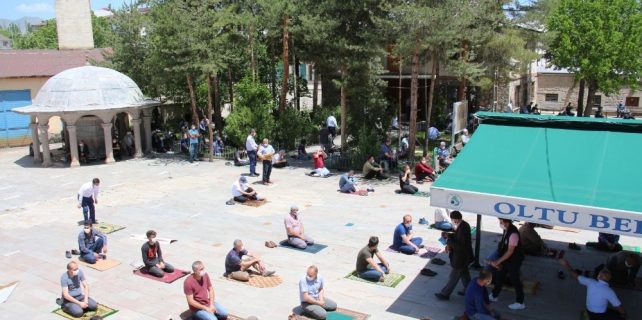 Korona virüsü nedeniyle uzun süredir camilerin cemaatle namaz kılınmasına kapatılmasının ardından bugün Oltu’da ilk defa tarihi Aslanpaşa Camii avlusunda cuma namazı kılındı. İmam Ayhan Taşbaşı tarafından kıldırılan cuma namazında vatandaşlar dua edip yeniden camide namaz kılabilmenin mutluluğunu yaşadılar.