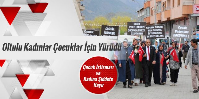 Oltulu kadınlar “Çocuk İstismarı ve Kadına Şiddete Hayır” konusuna dikkat çekmek için yürüdüler.