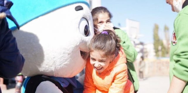 Palandöken Gençlik Merkezi Liderlerinden Fırat Ceyhan ile Halil Yazıcıoğlu koordinatörlüğünde gerçekleştirilen etkinlikte 2017 EYOF maskotu ‘Karbeyaz’da Horasanlı çocukların ilgi odağı oldu.