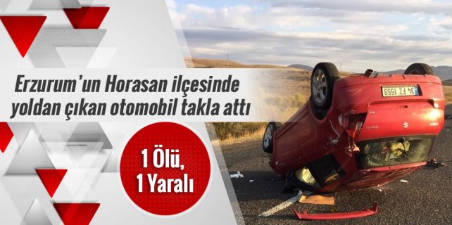 Erzurum’un Horasan ilçesinde yoldan çıkan otomobilin takla atması sonucu meydana gelen trafik kazasında araçta bulunan 1 kişi öldü, 1 kişi yaralandı.