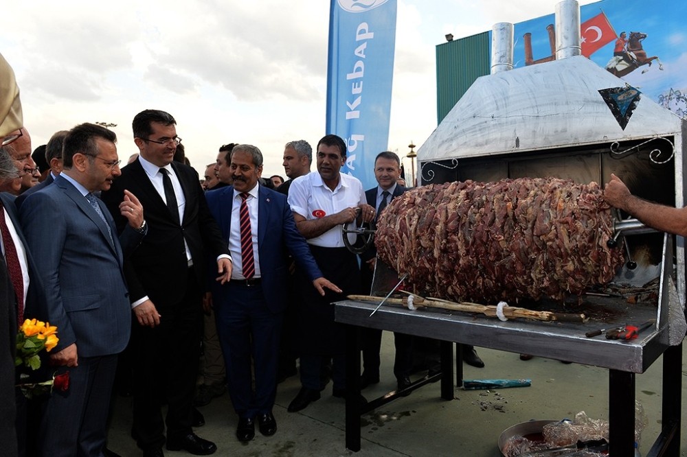 Etkinliklerde dernek tarafından yaptırılan 650 kilogram ağırlığındaki cağ kebabı fuar alanına vinç yardımıyla getirilerek pişirilmek üzere ocağa yerleştirildi. Dev cağ kebabına büyük ilgi gösteren vatandaşlar, cep telefonları ile o anı görüntüledi.