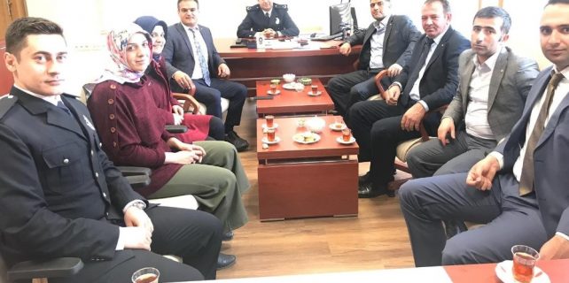 PASİNLER TİCARET VE SANAYİ ODASI YÖNETİM KURULU BAŞKANI AYDIN TAŞBAŞI VE BERABERİNDEKİ HEYET, TÜRK POLİS TEŞKİLATI’NIN KURULUŞUNUN 174. YILI VE 10 NİSAN POLİS HAFTASI ETKİNLİKLERİ MÜNASEBETİYLE PASİNLER İLÇE EMNİYET MÜDÜRÜ ORHAN BOZDEMİR’İ ZİYARET ETTİ