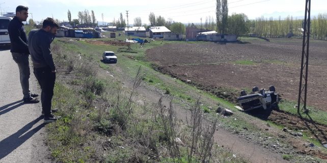 Erzurum’un Pasinler ilçesinde kontrolden çıkan araç şarampole uçtu.