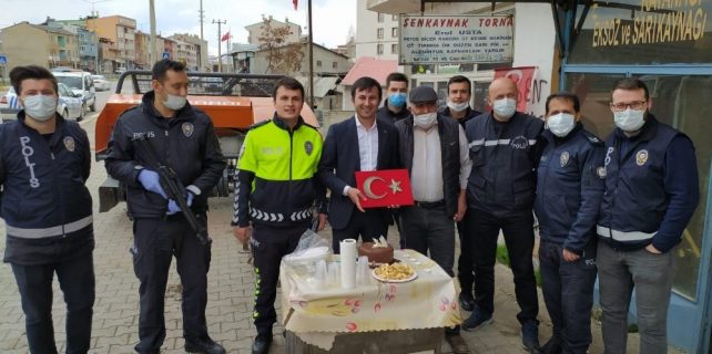 Aşkale’de esnaflık yapan Erol Özkaynak polis haftası münasebetiyle ilçedeki polislere sürpriz yaptı.