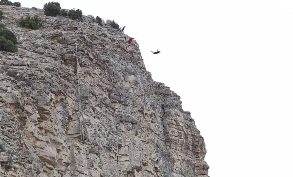 “Sakin Kent Uzundere” yabancı ekstrem sporcularının gözdesi oldu. Rusya’dan Türkiye’ye gelen 9 ekstrem sporcusu, ilçede daha önce belirlenen yüksek sıradağlardan görenlerin adeta nefesini kesen serbest uçuş ve paraşütle atlama gerçekleştirdi.