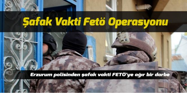 Erzurum Emniyet Müdürlüğü Kaçakçılık ve Organize Suçlarla Şube Müdürlüğü ekiplerinin uzun süredir takipte olduğu adreslere bu sabah saat 06.00’da operasyon düzenlendi. Emniyet Müdürü Mehmet Aslan’ın bizzat yönettiği operasyonda biri Gaziantep’te 13’ü kent merkezinde bulunan evlere eş zamanlı baskın yapıldı. 100’e yakın polisin katıldığı operasyonda KOM timleri, uzun zamandır aranan 4’ü kadın 14 kişiyi yakaladı. Çok sayıda örgütsel dokümanın da ele geçirildiği operasyonda meslekten ihraç edilmiş 5 emniyet personeli, 3 öğretmen, 1 teğmen, 2 sivil TSK imamı, örgüt yurdunda müdürlük yapan bir kişi ile örgüt şirketinde çalışan firari bir isim gözaltına alındı. Ayrıca terörist başı Fetullah Gülen’in aranan bir akrabası da operasyonda yakalandı.