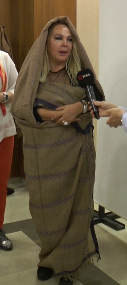 Ünlü sanatçı Safiye Soyman, kadınlar matinesi için geldiği Erzurum’da yöresel kıyafet olan Ehramı giydi.
