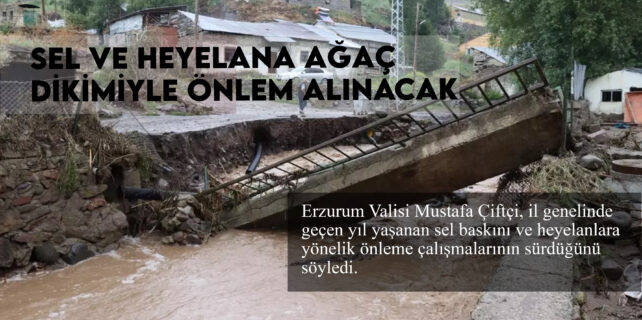 Vali Mustafa Çiftçi, Erzurum’da geçen yıl oldukça fazla sel baskınları ve heyelanların yaşandığını hatırlatarak, ” Şu anda zaman zaman ufak çaplı sel baskınları ve heyelanlar oluyor. Bu anlamda meteorolojinin hava hareketlerini yakından takip ediyoruz. Bununla ilgili uyarıları da sosyal medya hesaplarımızdan duyuruyoruz ki vatandaşlarımız tedbirli olsun. Geçen seneki sel baskınlarından veya heyelanlardan kaynaklanan durumlarla ilgili hem Devlet Su İşleri Bölge Müdürlüğü, hem Karayolları Bölge Müdürlüğümüz hem Orman Bölge Müdürlüğümüz çalışmalarını yürütüyorlar. Tekrar afetlerin olmaması noktasında. Geçen seneki sel baskınlarından dolayı epey bir çalışma yapıldı ve ilgili çalışmalarımız devam ediyor. Bu sene de devam edecek inşallah. Geçen hafta Orman Bölge Müdürlüğü’müzü ziyaret etmiştim. Orada Orman Bölge Müdürlüğümüze bir tahlili oldu. Sel baskınlarının olduğu yerlerde Devlet Su İşleri, Karayolları Bölge Müdürlüğümüzle, Büyükşehir Belediyemizle ortak bir çalışma yürütelim. Sadece o kurumlara bırakmayalım. Ağaçlandırma çalışmalarına önem verelim. Heyelan olan bölgelerde veya sel baskınlarının olduğu yerlerde ağaçlandırma çalışması da yapalım ki en azından onların yaptıkları çalışmalara biz de destek verelim diye” şeklinde konuştu.
