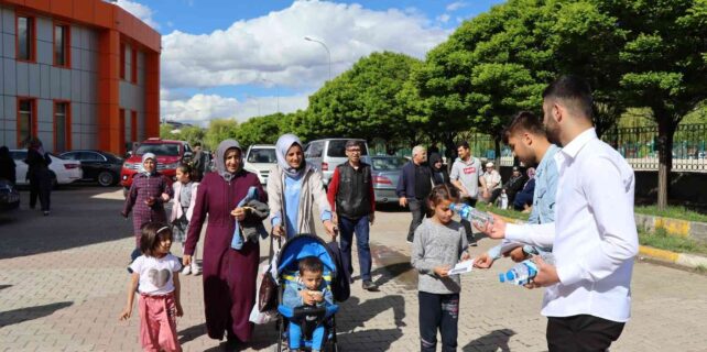 Oltu Beşeri ve Sosyal Bilimler Fakültesi İşletme Bölümü Öğrencileri tarafından su kıtlığına dikkat çekmek için broşür ve su dağıttılar.