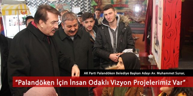 AK Parti Palandöken Belediye Başkan Adayı Av. Muhammet Sunar, “İnsan odaklı, insanı merkeze alan bir anlayış içerisinde vizyon projelerimizi hayata geçireceğiz” diye konuştu.