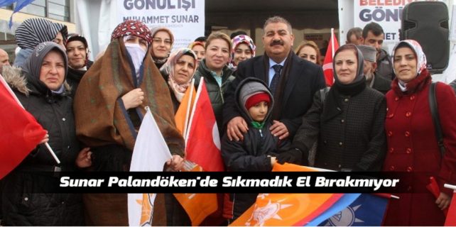 Sunar, AK Parti’nin yerel yönetim ufkunu, en başta vatandaşın gönül rızasının oluşturduğunu belirterek, “Bizim anlayışımıza göre hizmet; insanımızın fayda düzeyini en yüksekte tutmak ve kesinlikle mağduriyet oluşturmamaktır. Hizmet; istişare demektir, uyum demektir, ayakları yere sağlam basan plan, proje ve program demektir. Hizmet; beklentileri bilmektir, öncelik sıralamasını iyi yapmaktır. Hizmet; el ele vermektir, ortak akılda buluşmaktır. Bizim Palandöken ilçemizin geneline hâkim olacak anlayışımız işte budur. İlçemizi markalaştırmak; kentleşmede, turizmde, ticarette, eğitimde, kültür ve sanatta Palandöken’i öncü hale getirmek, en büyük gayemizdir” diye konuştu.