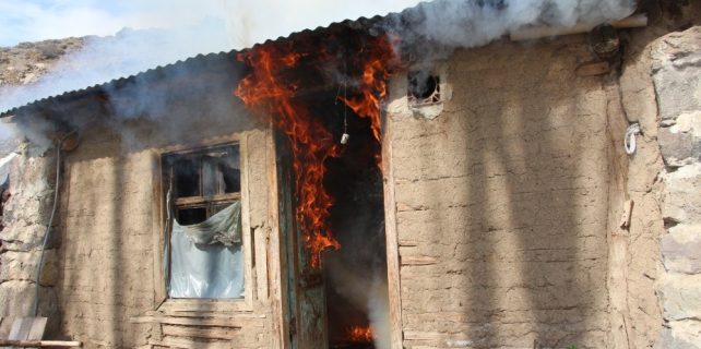 ERZURUM’UN OLUR İLÇESİNDE TANDIRDA EKMEK PİŞİRMEK İÇİN YAKILAN ATEŞ, PİKNİK TÜPÜNE SIÇRADI. ALEV ALAN PİKNİK TÜPÜ PATLARKEN, ÇIKAN YANGINDA KİMSE YARALANMADI.