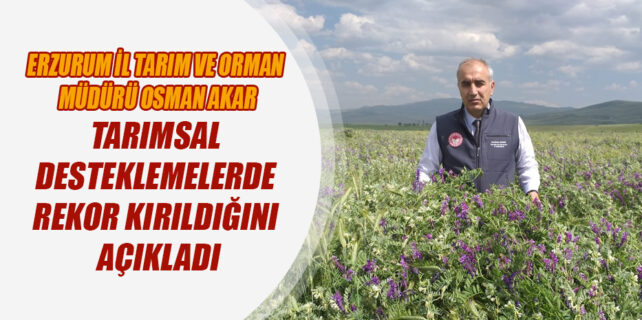 Erzurum İl Tarım ve Orman Müdürü Osman Akar, tarımsal desteklemelerde rekor kırıldığını söyledi.