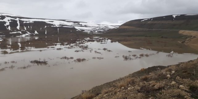 Edinilen bilgiye göre, karların erimesi nedeniyle Aras Nehri debisi yükselerek taşkına neden olurken, Erzurum-Tekman karayolunda oluşan heyelan ulaşımı aksattı.