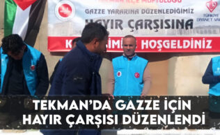 Erzurum’un Tekman ilçesinde Gazze’ye ulaştırılmak üzere hayır çarşısı düzenlendi....