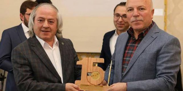 Başkan Sekmen’e konuşmasının ardından Şube Başkanı M.Hanefi İspirli TYB rozeti ve 15.yıl plaketi takdim etti.