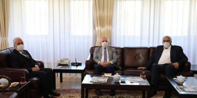 ERZURUM BÜYÜKŞEHİR BELEDİYE BAŞKANI MEHMET SEKMEN VE AK PARTİ ERZURUM İL BAŞKANI M. EMİN ÖZ, ATATÜRK ÜNİVERSİTESİ REKTÖRÜ PROF. DR. ÖMER ÇOMAKLI’YI ZİYARET ETTİ.