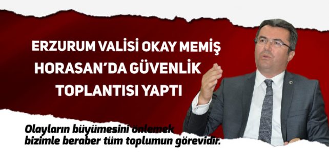 Erzurum Valisi Okay Memiş, iki gün önce Erzurum’un Horasan ilçesinde 2 kişinin ölümü 5 kişinin de yaralanmasıyla sonuçlanan kavga sonrası Horasan’a giderek güvenlik toplantısı yaptı.