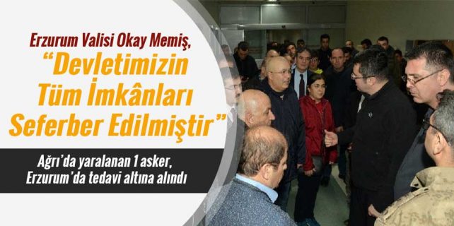Erzurum’dan bölgeye ekiplerin sevk edildiğini dile getiren Vali Memiş, şunları kaydetti: “Olay sonrası devletimizin tüm imkânları seferber edilmiştir. Roketli saldırıda yaralanan 2 sivil personelimiz ile bölgede mayın taraması yaparken önceden yerleştirilmiş patlayıcının infilak etmesi sonucu yaralanan bir askerimiz, askeri ve Sağlık Bakanlığımıza ait helikopterlerimizle ilimize getirilerek tedavi altına alınıştır. Doktorlarımız da yaralılarımızın sağlıklarına kavuşmaları için büyük bir çaba sarf ediyor. İnşallah en kısa sürede sağlıklarına kavuşurlar. Ben, şehidimize Allah’tan rahmet, tüm yaralılarımıza acil şifalar diliyorum.”