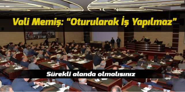 İl Koordinasyon Kurulu Toplantısında kurum müdürlerini uyaran Vali Memiş, “Oturularak iş yapılmaz. Sürekli alanda olmalısınız” dedi.