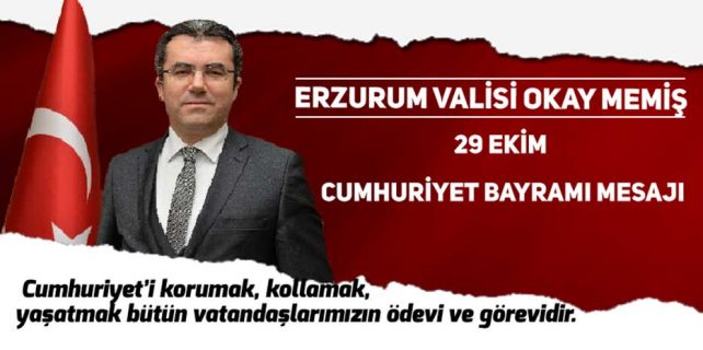 Erzurum Vali Okay Memiş, 29 Ekim Cumhuriyet Bayramı dolayısıyla bur mesaj yayımladı.