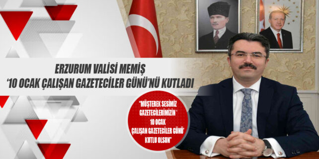 Erzurum Valisi Okay Memiş, 10 Ocak Çalışan gazeteciler günü dolayısıyla bir kutlama mesajı yayınladı. Vali Memiş, “Müşterek sesimiz gazetecilerimizin “10 Ocak Çalışan Gazeteciler Günü” kutlu olsun” dedi.