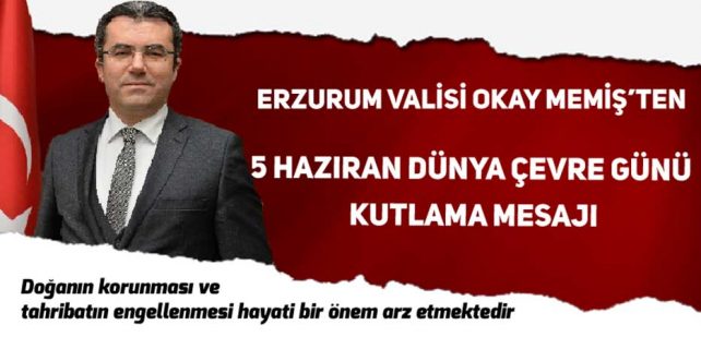 Erzurum Valisi Okay Memiş, 5 Haziran Dünya Çevre Günü dolayısıyla bir mesaj yayınladı.