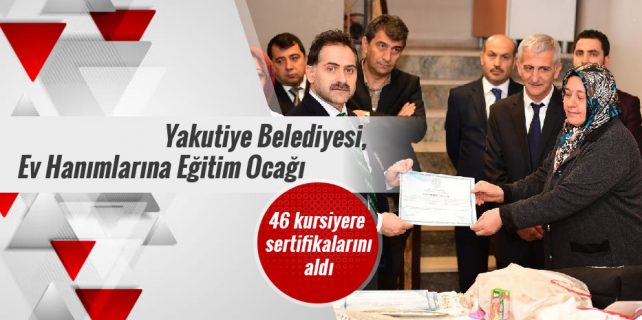 Kursu tamamlayan 46 kursiyere sertifikalarını Yakutiye Belediye Başkanı Dr. Mahmut Uçar ile birlikte Yakutiye Halk Eğitim Müdürü Mehmet Çiftçi, Yakutiye Belediye Başkan Yardımcıları Osman Yıldız, Suat Hayri Güneş ve Necati Yumuk verdiler.