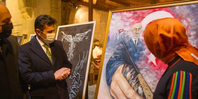 Erzurum Yakutiye Güzel Sanatlar Lisesi öğretmen ve öğrencileri tarafından Mehmet Âkif Ersoy anısına Yakutiye Medresesi’nde resim sergisi düzenlendi.