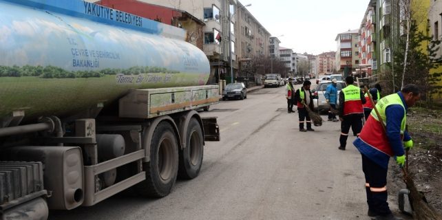 Erzurum Merkez Yakutiye İlçe Belediyesi, ilçe merkezinde bahar temizliği yapıyor. Cadde ve sokaklar temizlik personeli tarafından taranıyor. Kaba çöplerin alınmasının ardından tankerle cadde ve sokaklar suyla yıkanıyor. Belediye Başkanı Dr. Mahmut Uçar, kışın ardından sokaklarda cüruf, kum, çakıl ve benzeri atık maddelerin biriktiğini belirterek “Temiz bir Yakutiye için genel temizlik yapıyoruz. Personelimiz, bütün cadde ve sokaklarda aynı çalışmayı gerçekleştirecek” dedi.