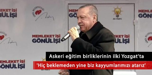 Türkiye Cumhurbaşkanı ve AK Parti Genel Başkanı Erdoğan, partisinin Yozgat Cumhuriyet Meydanı’nda düzenlediği mitingde vatandaşlara hitap etti. Cumhurbaşkanı Erdoğan, yeni kurulacak askeri eğitim birliklerinden ilkinin Yozgat’ta olacağını duyurdu.