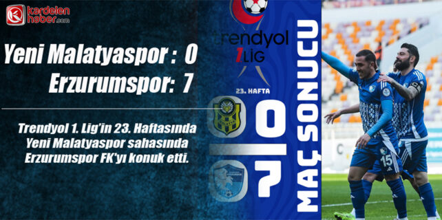 Trendyol 1. Lig’in 23. Haftasında Yeni Malatyaspor, Erzurumspor FK ile karşı karşıya geldi. Karşılaşmayı Erzurumspor 7-0 kazandı. Yeni Malatyaspor 1.Lig’de bitime 15 hafta kala resmen 2.Lig’e düşmüş oldu
